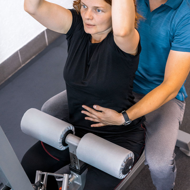 (gezielte Bewegungsübungen in individuell funktionellen Ausgangsstellungen, gezielte Dehn- bzw. Mobilisationstechniken, gezielte Kräftigungsübungen, kleine abgestimmte Eigenübungsprogramme)